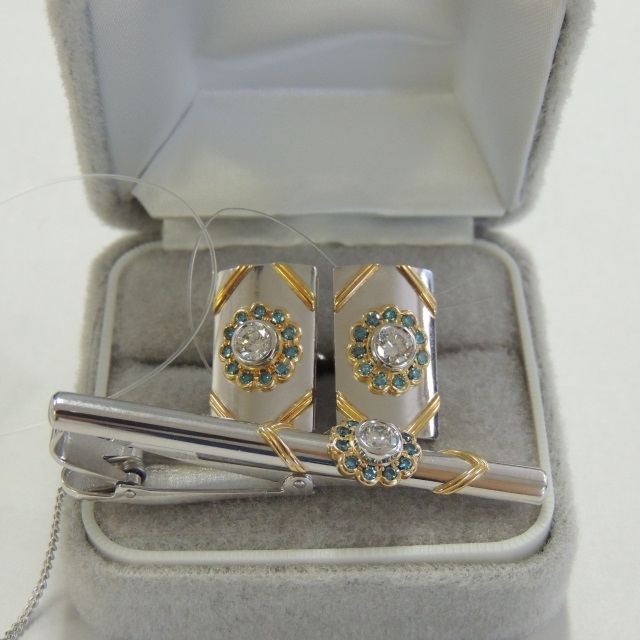 カフス タイバー ダイヤ カフスのみ14.5g K18/Pt900/K14WG 25.20g 石目:0.96