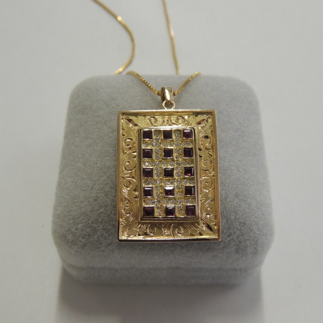 ペン・ネック ルビー ダイヤ K18YG 21.40g 石目:0.90 0.51
