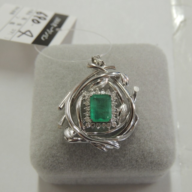 ペン・ネック エメラルド ダイヤ トップ2.6g Pt900/850/K14WG 10.00g 中ソ 石目:1.53 0.28 0.03