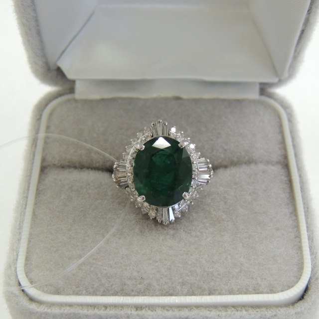 リング エメラルド ダイヤ Pt900 9.20g 石目:6.10 0.87