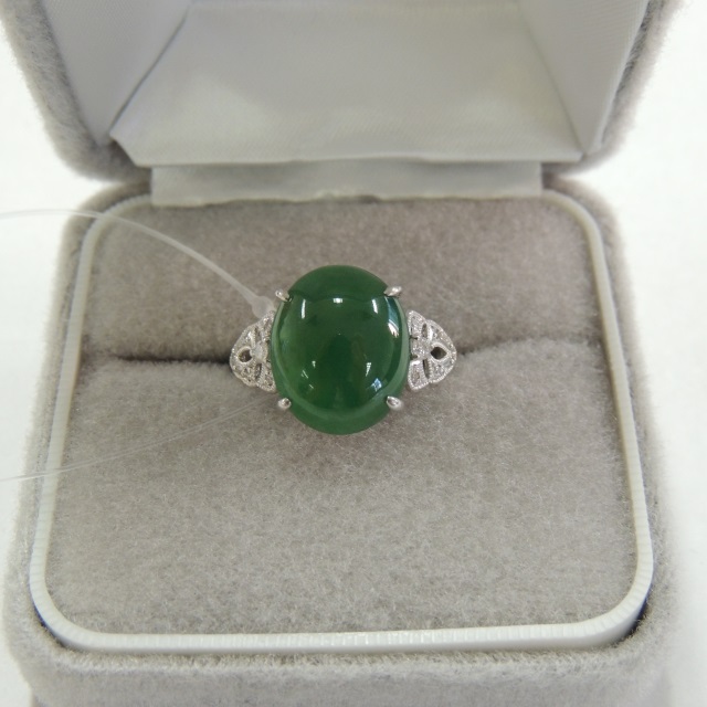 リング ヒスイ ダイヤ Pt900 6.10g 石目:7.185 0.14