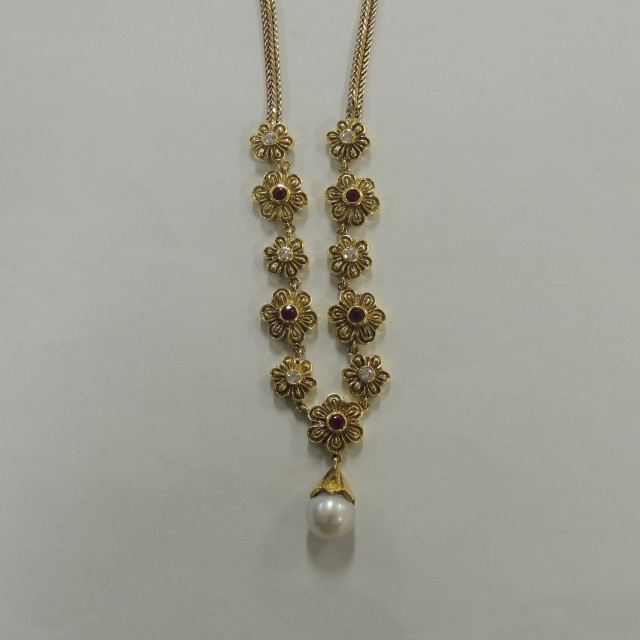 ネックレス ルビー ダイア パール K18YG/K14 30.60g 石目:R1.14 D0.43