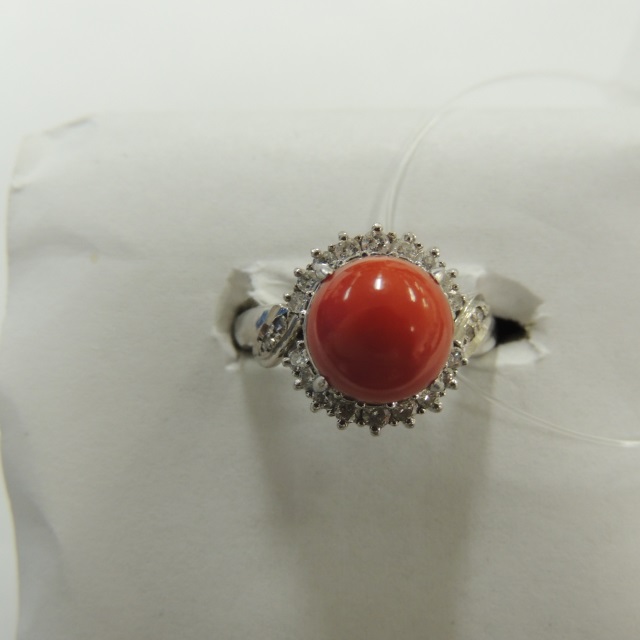 リング サンゴ ダイヤ Pt900 6.90g ソ 石目:0.36