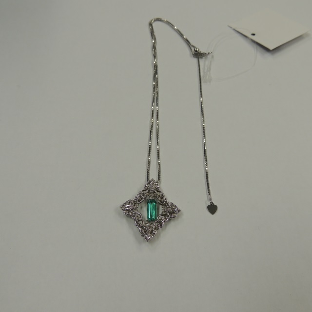 ネックレス エメラルド K18WG Pt900 12.95g 石目:E1.18/0.27