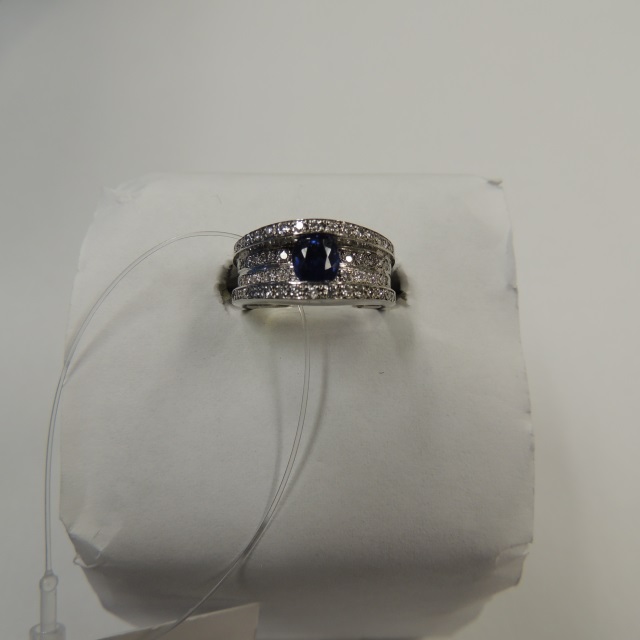 リング サファイア ダイヤ Pt900 10.90g 石目:S0.84 D0.33