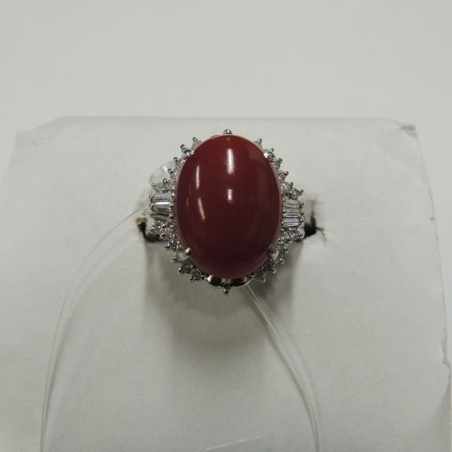 リング サンゴ K18/Pt900 15.50g 中ソ 石目:0.12