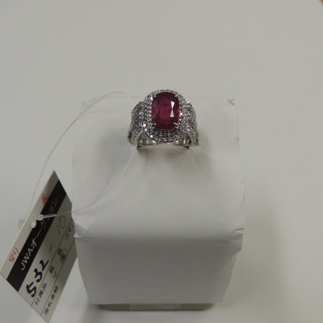 リング ルビー非加熱 Pt900 15.55g G.R.S.鑑 石目:R4.57/D1.71