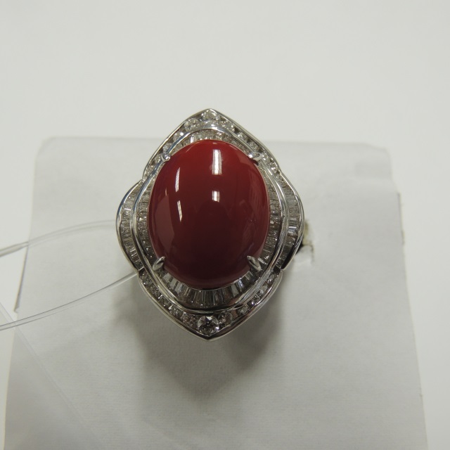リング サンゴ ダイヤ Pt900 12.80g 中ソ 石目:1.35