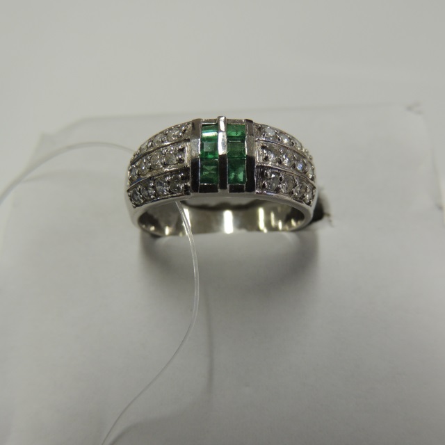 リング エメラルド ダイヤ Pt900 8.90g 石目:E0.38 D0.63