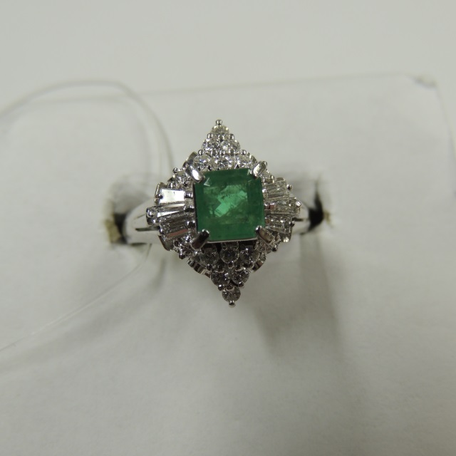 リング エメラルド ダイヤ Pt900 7.40g 石目:E0.87 D0.52