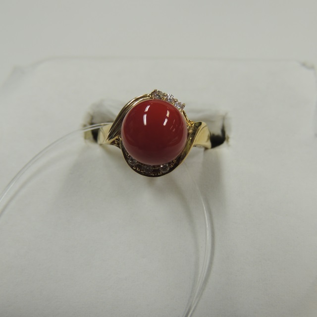 リング サンゴ8.8mm ダイヤ K18 3.30g 石目:D0.09