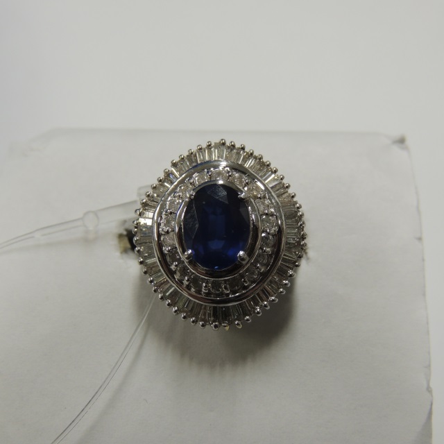 リング サファイア ダイヤ Pt900 13.40g 中ソ 石目:2.17 1.33