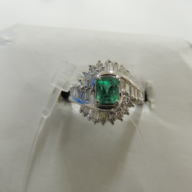 リング エメラルド ダイヤ Pt900 7.40g 中ソ 石目:E0.57 D0.82