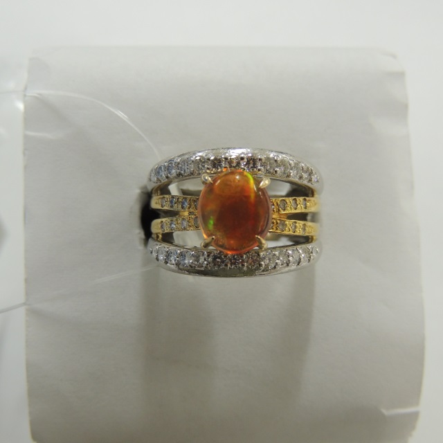 リング ファイアオパール ダイヤ Pt900/K18 12.80g ソ 石目:OP1.52 D0.70