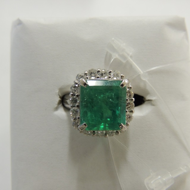 リング エメラルド ダイヤ Pt900 12.00g GRJソ 石目:6.37 1.05
