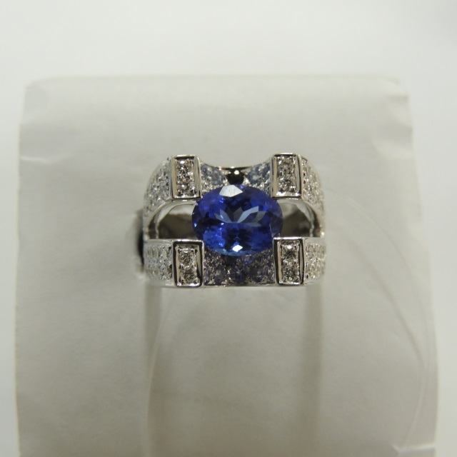 リング タンザナイト ダイヤ ▲メレ落1P K18WG 12.10g 石目:2.19 0.34 0.95