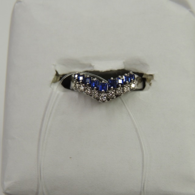 リング 角サファイア メレダイヤ Pt900 5.15g 石目:0.13 0.37