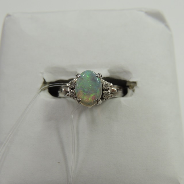 リング ホワイトオパール メレダイヤ Pt900 5.45g 石目:0.66 0.05