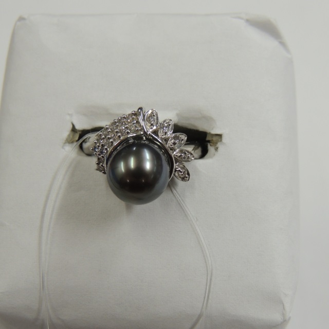 リング 黒パール ダイヤ約9.5m/m Pt900 8.10g 石目:0.20