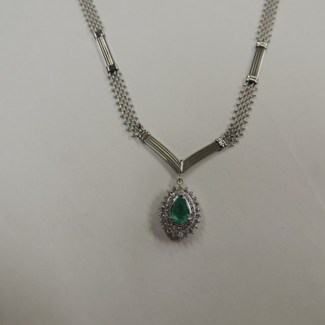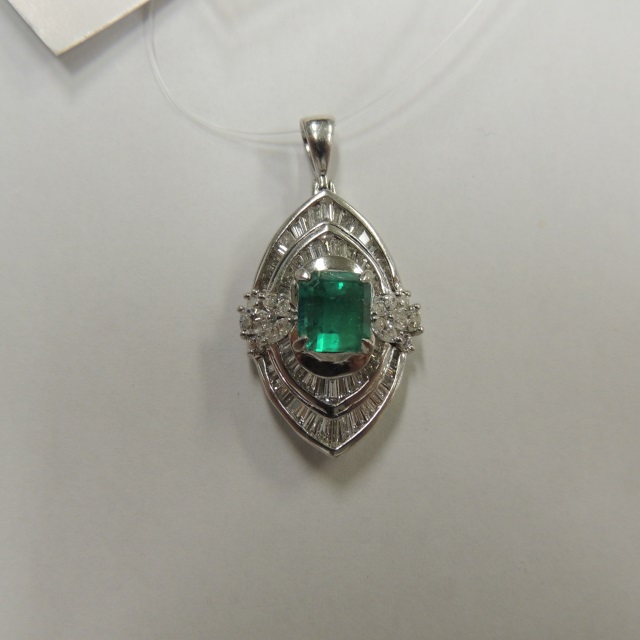 ネックレス 天然エメラルド ペアーシェイプ Pt900/850 19.20g ソ 石目:E0.70 FD0.50