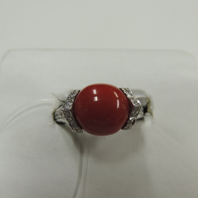 リング サンゴ ダイヤ Pt900 10.70g GRJソ 石目:0.38