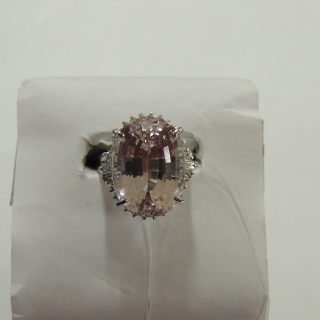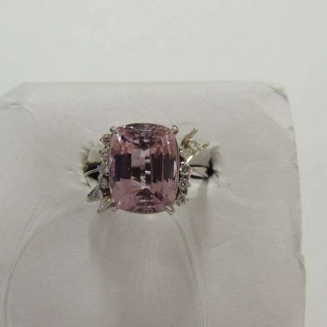 リング クンツアイト Pt900 12.20g 石目:QT16.79 D0.43
