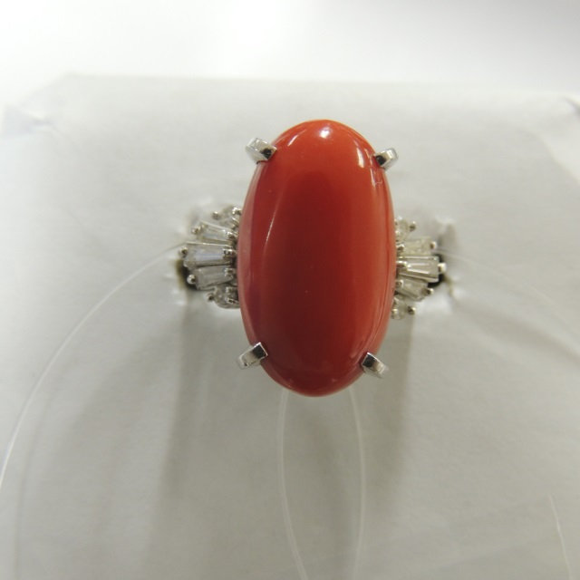 リング サンゴ ダイヤ Pt900 10.60g 日米ソ 石目:0.41