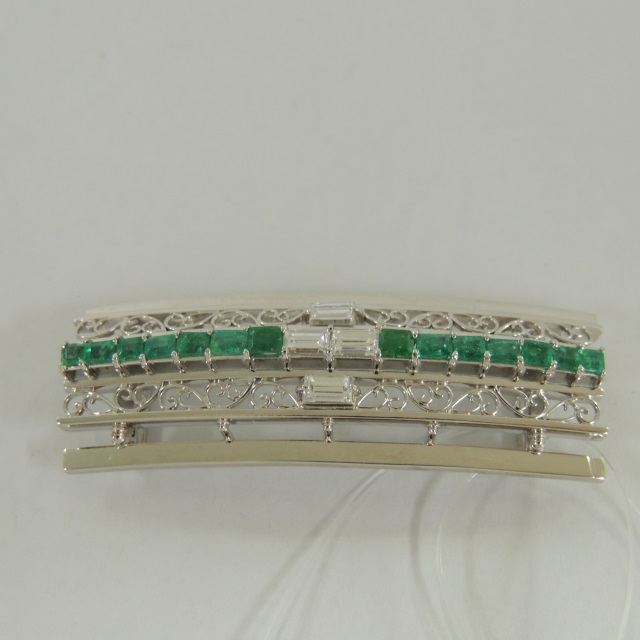 帯留 エメラルド Pt900 17.20g 日宝ソ 石目:1.04 0.65