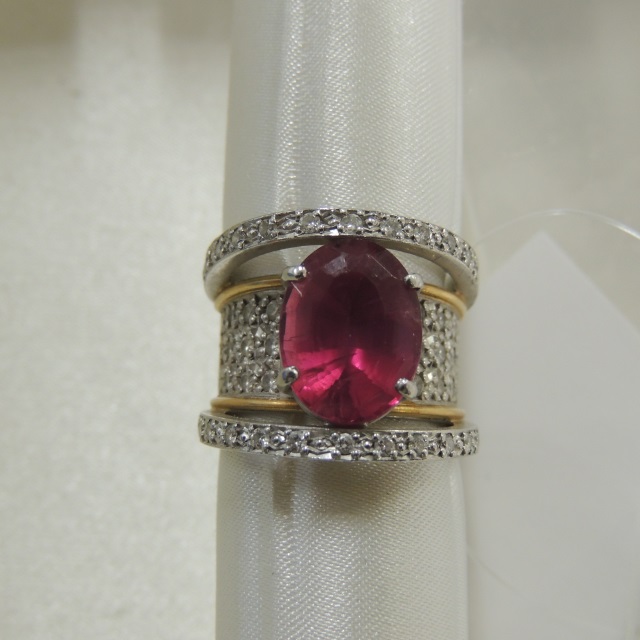 リング トルマリン ダイヤ Pt900/K18 20.40g 日米ソ 石目:6.43 0.89