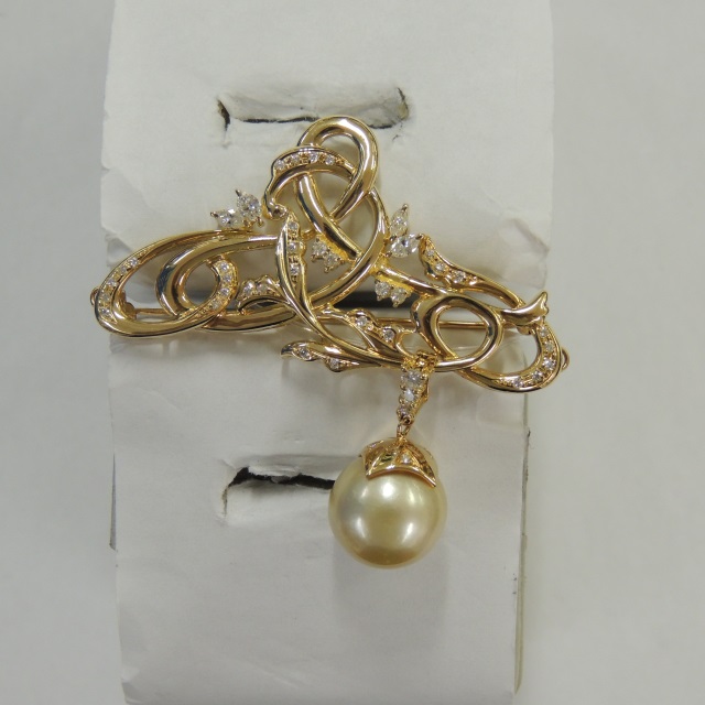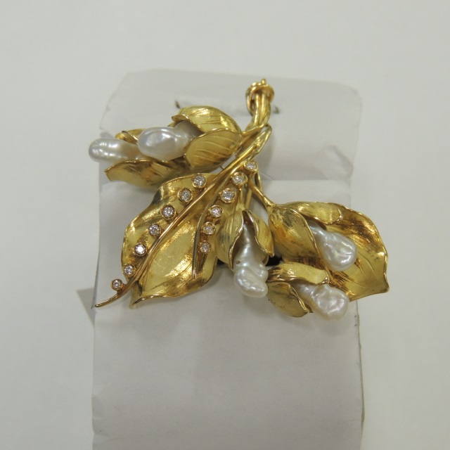 ブローチ ダイヤ パール ▲金性刻印不明 K18 20.70g 石目:0.12 0.60