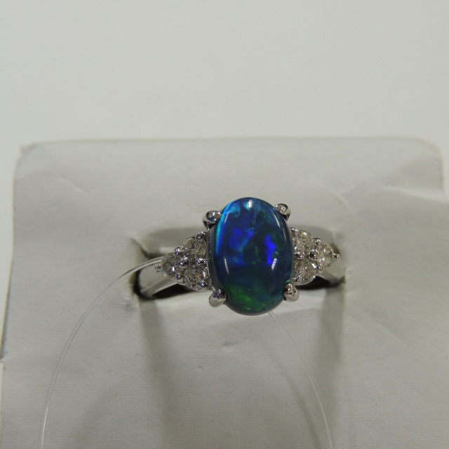 リング ブラックオパール Pt900 8.10g 鑑 石目:3.57 D0.40