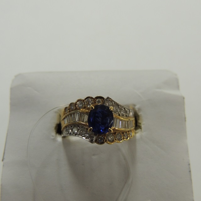 リング サファイヤ K18/Pt900 10.70g 石目:S0.57 0.58 0.31 D0.66
