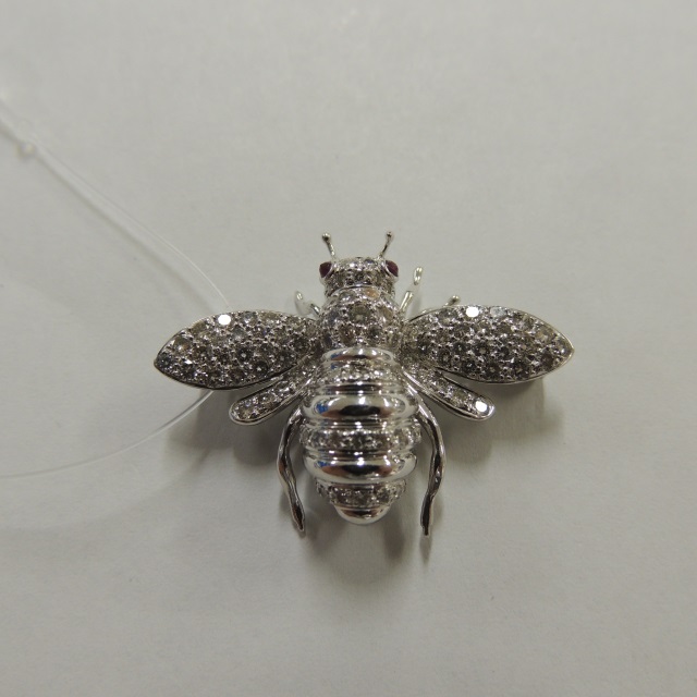 ブローチ ルビー ダイヤ K18WG 8.80g 石目:D1.63 R0.08