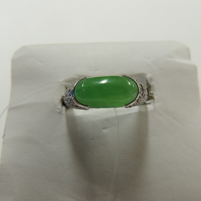 リング ヒスイ Pt900 7.10g 石目:3.44 D0.57