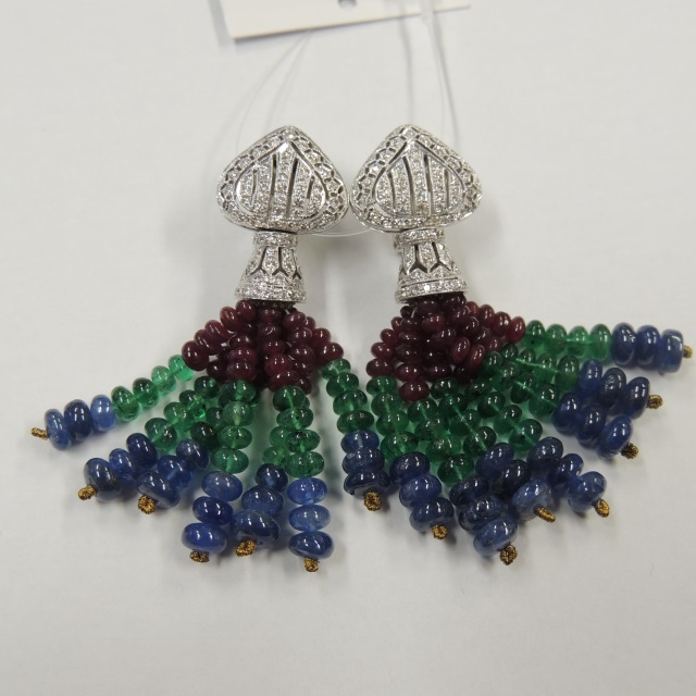 イヤリング トリカラ-ビーズ K18WG 34.20g 石目:E2.50 D1.39 S5.20 R3.00