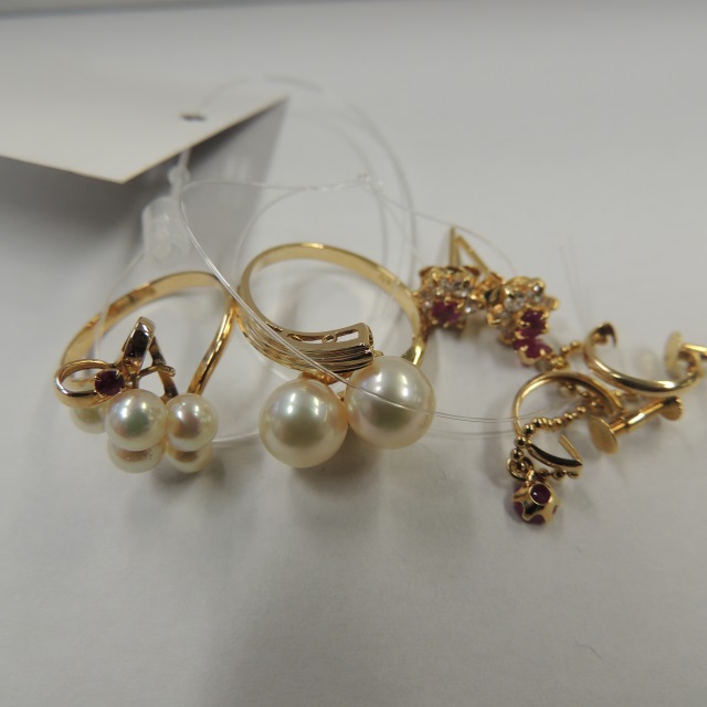 リング ピアス イヤリング 真珠 ルビー K18/K14 8.10g