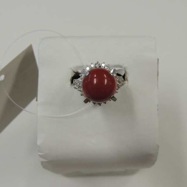 リング サンゴ ダイヤ Pt900 11.40g 石目:0.60