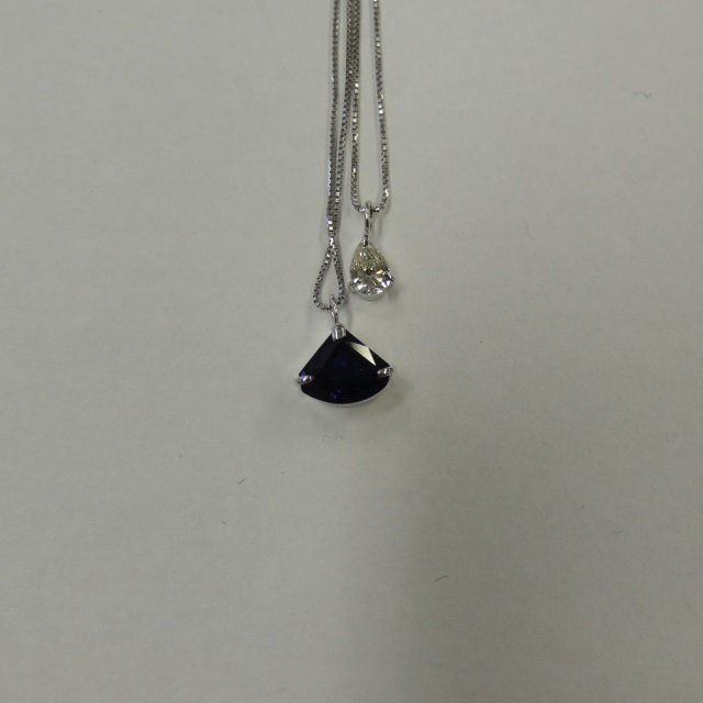 ネックレス サファイヤ ダイヤ K18WG 2.70g 石目:S1.25 D0.25
