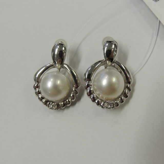 ピアス パール ダイヤ 12mm Pt900 16.00g 石目:0.08 0.08
