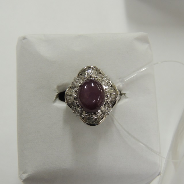 リング パープル スターサファイヤ Pt900 10.90g 中ソ 石目:6.55 D0.78