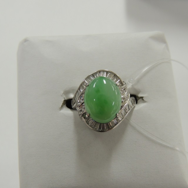 リング ヒスイ Pt900 7.40g 中ソ 石目:6.17 D0.69