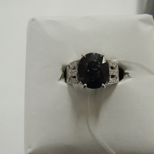 リング 非加熱サファイヤ Pt900 15.90g 中鑑 石目:5.967 FD1.86
