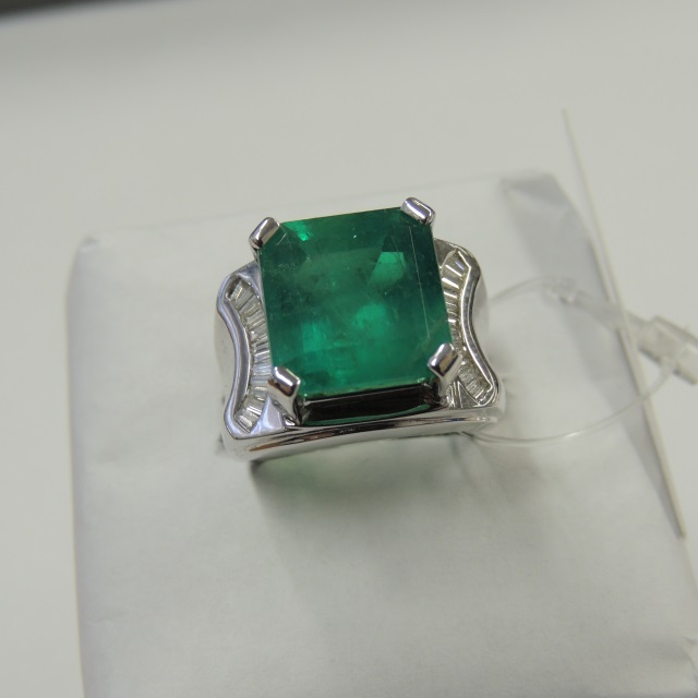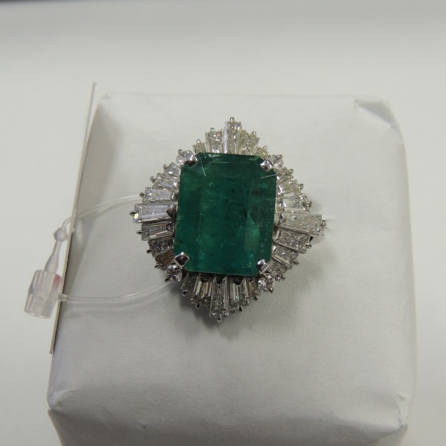 リング エメラルド ダイヤ WG 18.50g 鑑