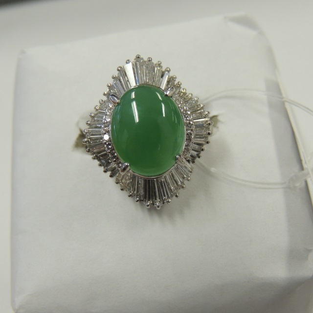 リング ヒスイ ダイヤ Pt900 40.00g 鑑 石目:32.313 D5.96