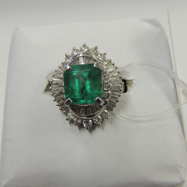 リング エメラルド ダイヤ Pt900 12.70g 鑑 石目:D1.58 6.81