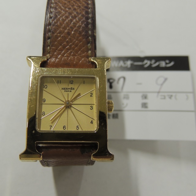 エルメス Hウォッチ QZ シャンパン HH1.201 ロB GP/革