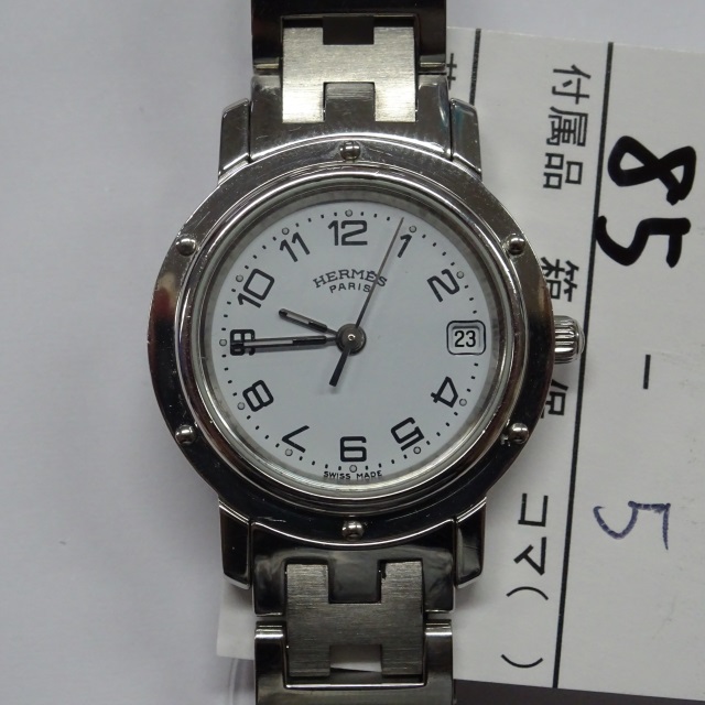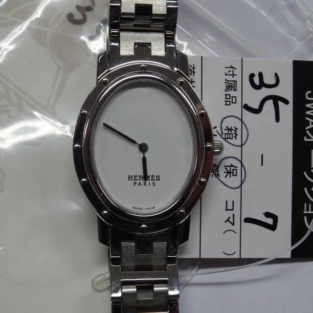 エルメス クリッパーオーバル CO1.510 白 QZ SS 箱 保 参267,750