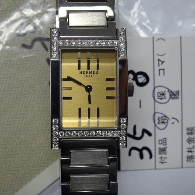エルメス タンデム TA1.230 純正ダイヤベゼル ピンク QZ SS 箱 保