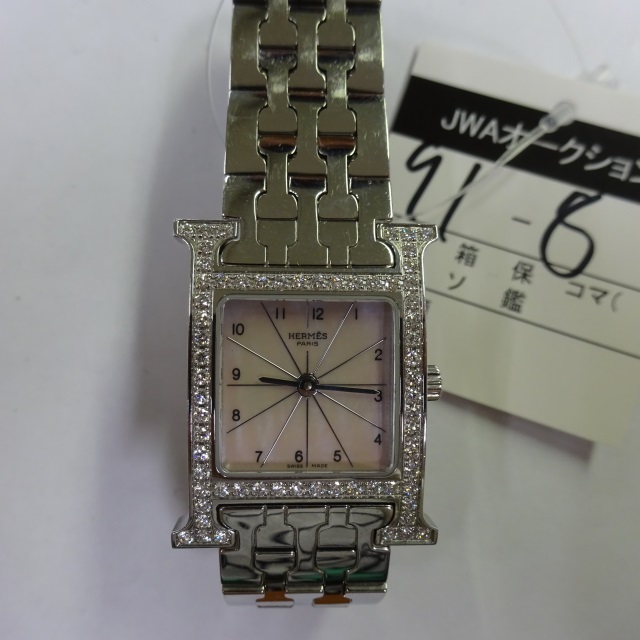 エルメス HH1.230 Hウォッチ ピンクシェル ダイヤベゼル SS
