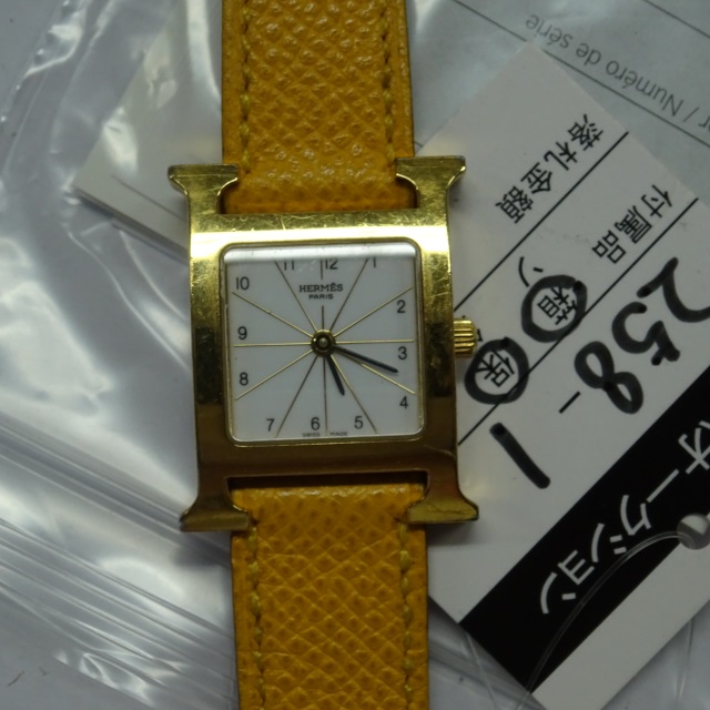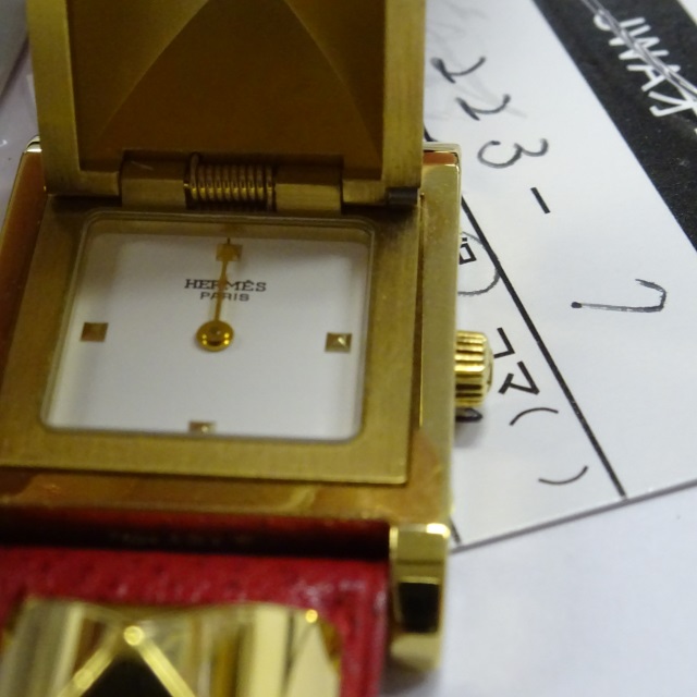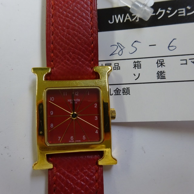 エルメス Hウォッチ ゴールドベゼル 赤ベルト HH1.201